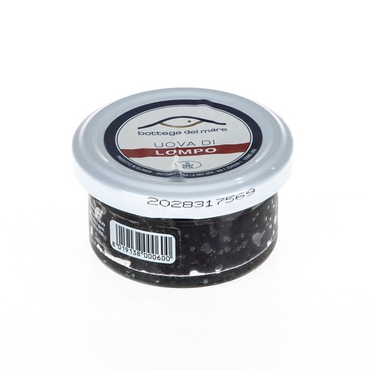 Prodotto venduto in vasetto di vetro contenente uova di lompo nero da conservare alla temperatura di +1-+4°C, pronte all’uso.