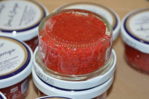 Ingredienti: UOVA DI LOMPO (82%), acqua, sale, adddensante E415, correttore di acidità E330, conservante E211, aromi, coloranti E160C, E120. Conservare in frigo da 0°C a +5°C. Prodotto indicato per la preparazione di antipasti di pesce ed altre ricette che implichino l’utilizzo delle uova di lompo come salsa da applicare sopra pane altri prodotti da forno.